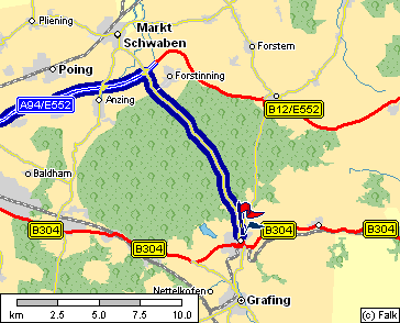 Vom Marktplatz aus in Richtung Forstinning und etwa 0,7km fahren, bis es